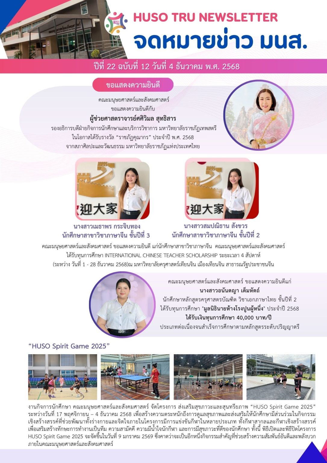 ปีที่ 22 ฉบับที่ 12 วันที่ 4 ธันวาคม พ.ศ. 2568Thana04/12/2025ข่าวสาร, จดหมายข่าว มนส. Home ข่าวสาร จดหมายข่าว มนส. ปีที่ 22 ฉบับที่ 12 วันที่ 4 ธันวาคม พ.ศ. 2568 จำนวนผู้เข้าชม : 1